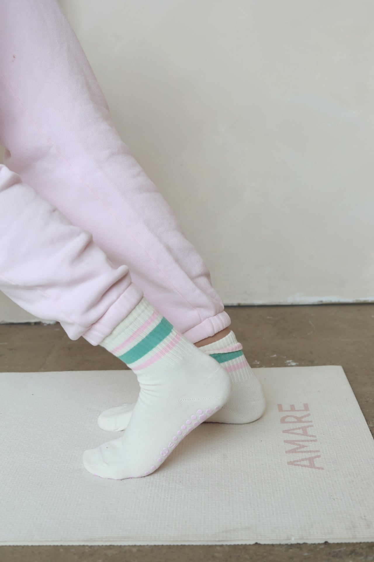 Enhance your Pilates practice with our premium grip socks. Designed for stability and comfort, these socks feature non-slip grips to keep you grounded during every movement.